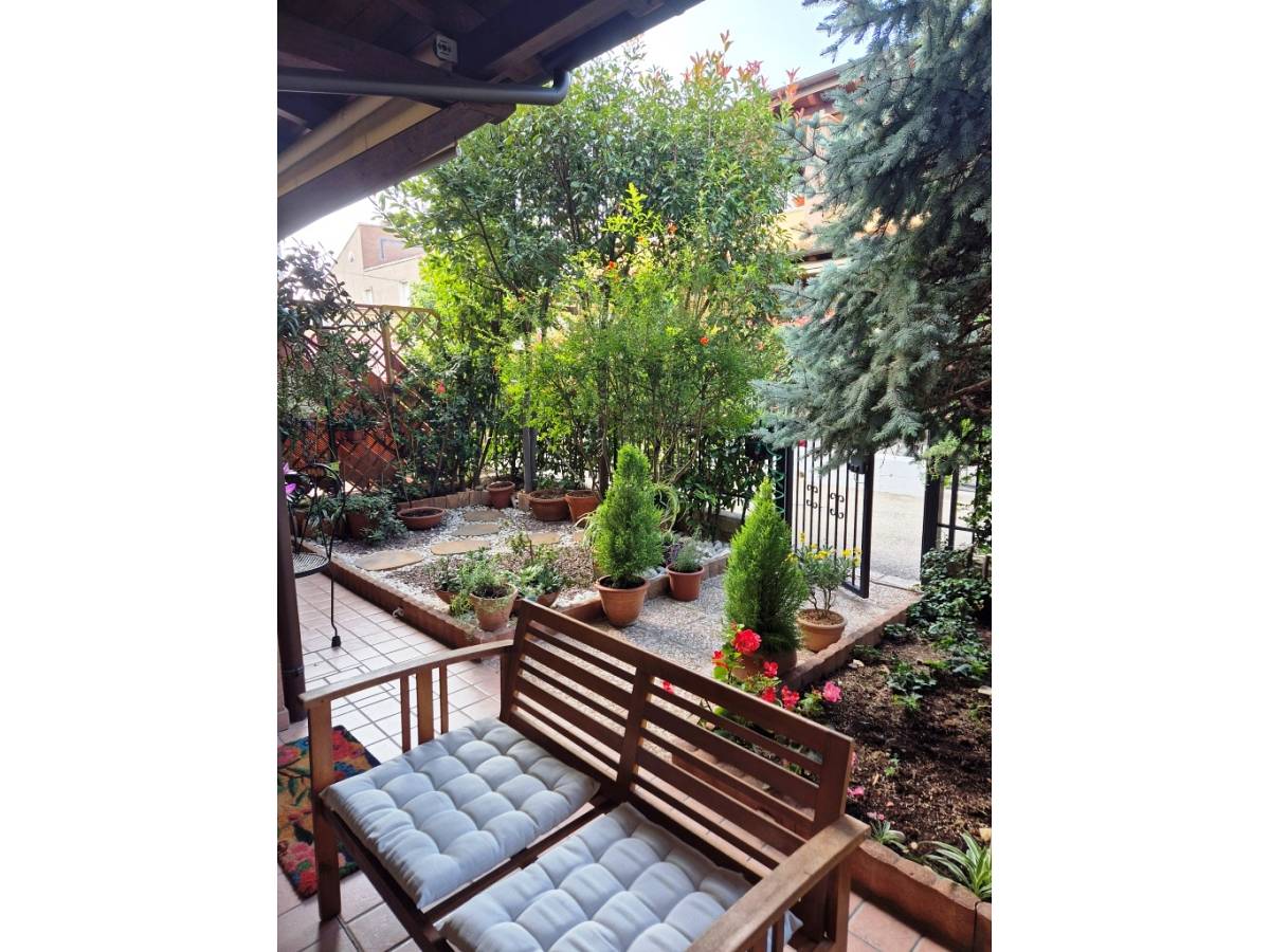 Via R. Paolucci, Manoppello Scalo. Vendita di grazioso villino a schiera, dislocato su più livelli, composto da un piano terra dove troviamo un grazioso ingresso indipendente da giardino privato recintato, ampio e luminoso soggiorno dotato di termocamino con adiacente cucina ed ulteriore cortiletto posto sul retro, servizio igienico finestrato dotato di box doccia, camera da letto al piano ammezzato, attualmente uso studio con ulteriore balcone, al piano superiore giungiamo alla zona notte, mediante grazioso vano scala interpiano dagli aspetti architettonici che caratterizzano l’unità immobiliare in oggetto, dove troviamo due ampie camere da letto, con tetto in legno lamellare a vista, servite da ulteriori balconi coperti e servizio igienico dotato di vasca. L’oggetto di vendita di questa funzionalissima soluzione abitativa comprende anche un ampio garage, con comodo accesso da cortile condominiale oltre ad attiguo prezioso ampio locale cantina. Ottime dotazioni e finiture tra le quali porta blindata, impianto di riscaldamento autonomo, impianto di condizionamento caldo/freddo, impianto di allarme, videocitofono, pavimentazione e rivestimenti in gres porcellanato di ottima qualità , infissi esterni in legno e vetrocamera e persiane in legno, infissi interni di pregevole fattura ecc...Zona molto ben servita da mezzi pubblici e/o negozi e con estrema facilità di collegamento con le maggiori arterie viarie quali asse attrezzato, autostrada A14 ed A25.